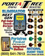 Portatree is the leading manufacturer of drag race Practice Trees, Test Tracks, Professional Drag Race Timing Systems, and Scoreboards. The Eliminator Next Gen and National Event Tree combo is the most realistic, modern, and easy-to-use practice Tree on the market! Catalog is free. Call 800.541.7613 or 508.278.2189. Visit us at PortaTree.com.
