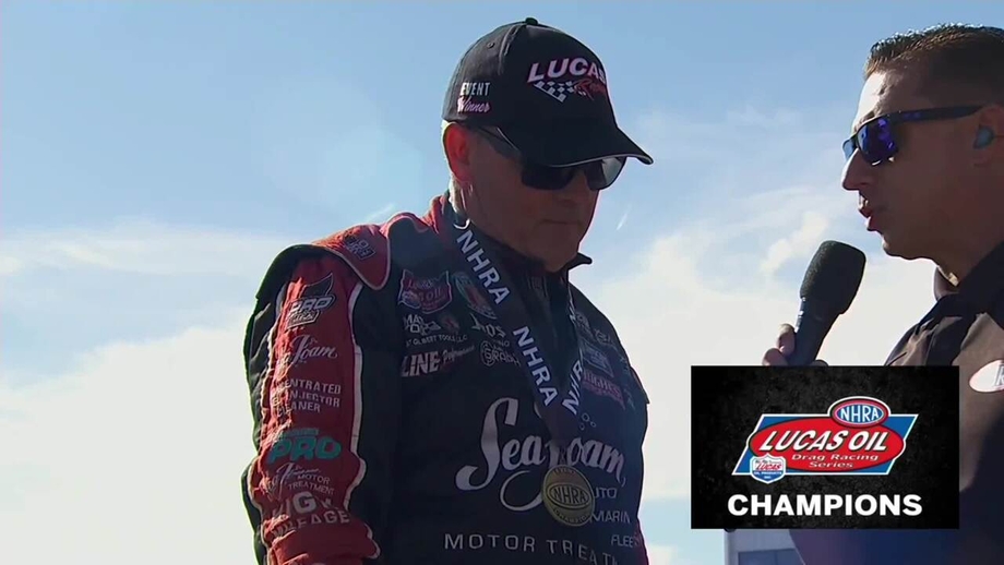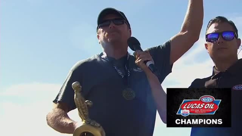 Go behind the scenes with the winners of the NHRA Four-Wide Nationals as they celebrate their victories with their teams and one another, and accept congratulations from their vanquished final-round foes.