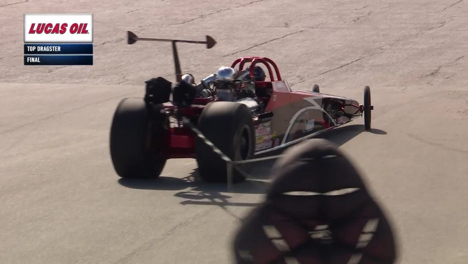 Cody Webber left first and then matched his 6.52 dial with a 6.524 to take the title in Right Trailers Top Dragster over Stan Essery, who broke out by .006-second.