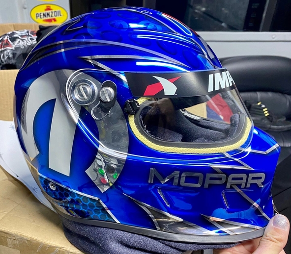 Leah Pruett celebrated St. Patrick's Day with a different shade of green; blue, to be exact. The Don Schumacher Racing / Mopar Top Fuel racer unveiled an all-blue Impact Racing Helmet that she will debut this season. The helmet will pair with her…