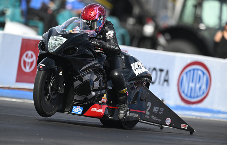 In Pro Stock Motorcycle, no one was able to touch Angelle Sampey’s track-record 6.703 run from Friday, but several riders came close. Matt Smith, in hot pursuit of a record-tying sixth championship, finished as the No. 2 seed with a 6.719 while championship rival Joey Gladstone overcame some early struggles to land in the No. 3 spot with a 6.720 on his Reed Motorsports Suzuki.