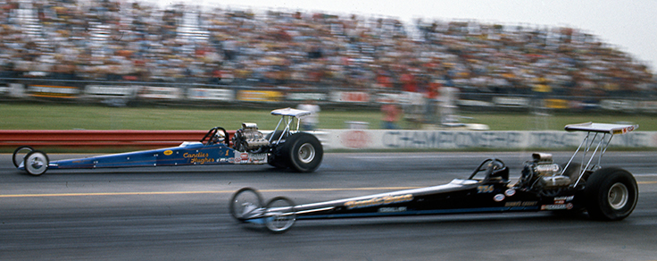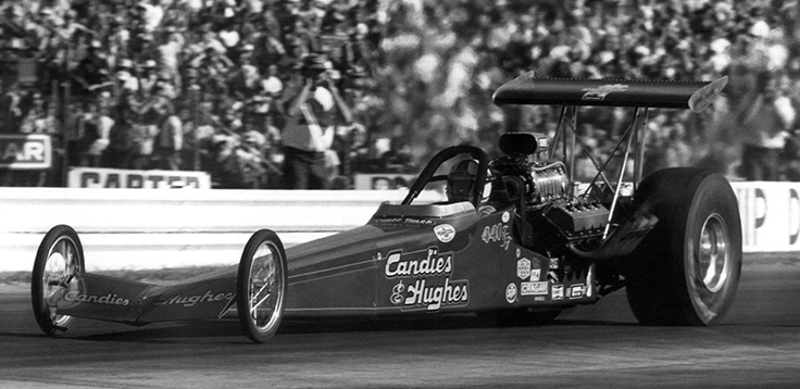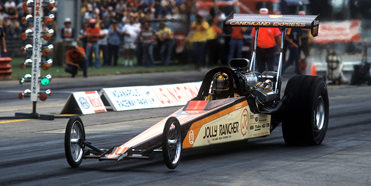 The California carpet king won just two races in his NHRA Top Fuel career, both in 1977. Before winning the NHRA World Finals, Baca conquered Indy’s tough 32-car field with wins over Bob Struksnes, Clayton Harris, Frank Bradley, Rance McDaniel, and, in the final, defending event champ Richard Tharp. What’s especially memorable about Baca’s win was that his third-round win over Bradley clinched Shirley Muldowney’s first world championship. She had been upset in round one by Dick LaHaie when her car wouldn’t shift into high gear and was a starting-line spectator when Baca finished off Bradley, the only person with a chance to stop her championship run.