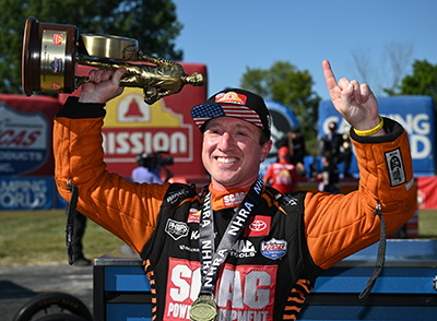 He blinked a few times. “When you put it like that, it feels pretty darn good,” he said. “It's going to take a few days to process that. I have a very good relationship with Joe Amato, and I've seen videos of him winning Indy, and then to actually do what he did, what Prudhomme did, what Garlits did, I mean, it's beyond words. It really is special. It's an absolute dream come true.”