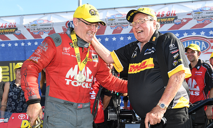 It’s also hard to believe that the Kalitta family has only conquered the U.S. Nationals Top Fuel field twice, 25 years apart. Patriarch Connie had been racing at the Nationals since the early 1960s and finally won the race in 1994, when, at the still-spry age of 56, he defeated 58-year-old Eddie Hill in a final-round battle of the class' oldest drivers. Connie had been runner-up, as mentioned previously, to Shirley Muldowney in 1982 and was also the final hurdle in Don Garlits’ remarkable 1984 comeback.