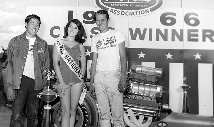 As implausible as it sounds, Roland Leong repeated his 1965 feat, winning the Winternationals and the Nationals again in 1966, this time with Mike Snively in the saddle of the Hawaiian instead of Don Prudhomme. Snively won Sunday’s AA/FD class title in Indy, then sat out all Monday to face one of Leong’s first drivers, fellow Hawaiian Danny Ongais, in the Nationals final. Ongais, at the wheel of the Honda of Wilmington “Mangler,” had beaten Prudhomme in the Monday final but couldn’t stop his old boss from winning Indy for the second straight year.
