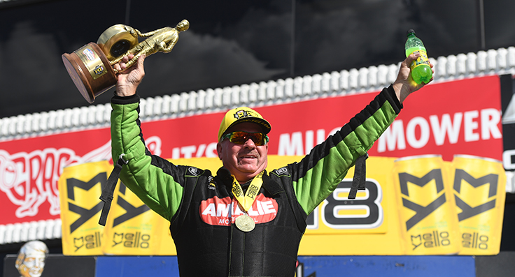 The second-generation driver won Indy in his spectacular rookie season in Don Prudhomme’s Wes Cerny-tuned Miller Genuine Draft car, returning “the Snake” to the Indy winner’s circle for the eighth time and his first since 1989 as a Funny Car driver.