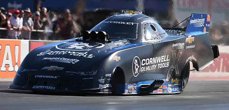 Reigning world champ and points leader Austin Prock, whose incoming lead was 112 points over four-time world champ Matt Hagan, showcased that dominance with a 3.925 to lead the first session. Hagan was third with a 3.951, with a surprisingly strong Alexis DeJoria between them with a 3.948.