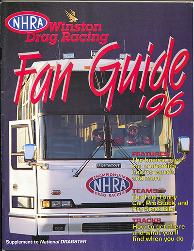 The photo at right, shot that morning outside the National Dragster offices in Glendora, Calif., graced the cover of our 1996 Fan Guide. (Force, thankfully, did not drive the bus.)