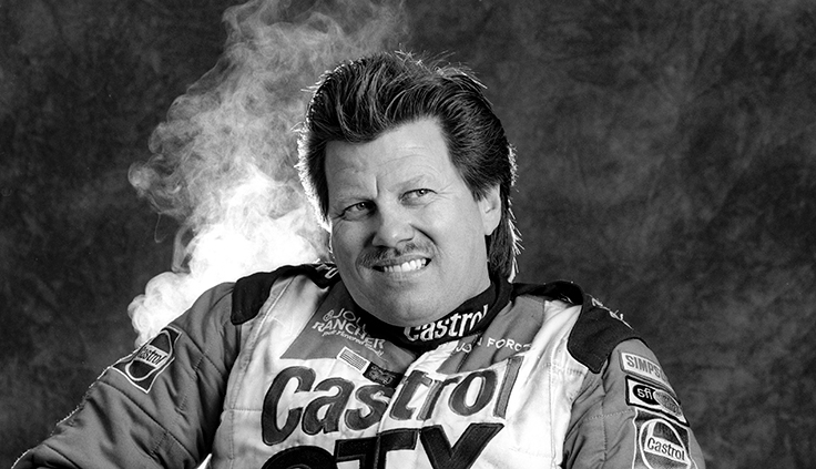 I was perched, as I usually was back in the day, on the finish-line TV camera stand high above the track. I had a fresh roll of film (remember those?) loaded and buried my finger in the motordrive button as I watched madness unfold in front of me. As I wrote in this remembrance 25 years later, it looked like Force had lost his mind as he banked his Castrol Olds off the ‘Plex’s guardwall not once, but twice, trying to stay ahead of Pedregon, who was about to steal his championship.