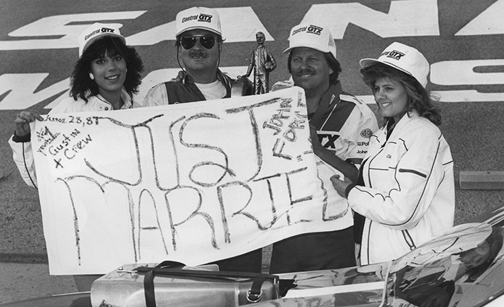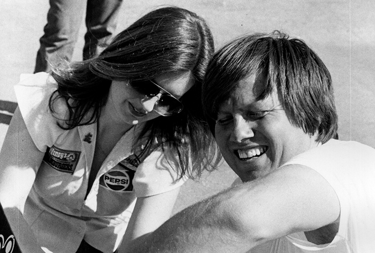 “I knew nothing about drag racing, so he took me to Orange County [Int’l Raceway], and it looked pretty exciting,” she recalled. “I think it was the Fox Hunt [race], and there were bands playing, and at the end of the race, everyone ran out onto the track. There were streakers. It was pretty bizarre and wild. He told me that he always thought he’d want to have a Funny Car one day. It all seemed so exciting, but I didn’t know how good he’d be or how it would work … and at the start, actually, it didn’t work very well. I remember the first race he took me to when he was racing, his car caught on fire.”