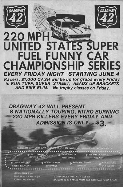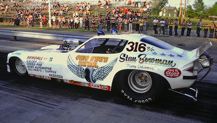 Joyce: “That’s at Dragway 42, and I really liked Stan because he was just down the road in Cleveland. I liked the car because it was sort of unique with the flashing lights on the roof.”