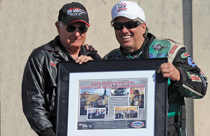 “Let me tell you about John Force, Phil,” Garlits said. “Nobody can take anything away from John Force. He's one of the greatest drag racers who ever lived. He's done more for the sport than anybody, and the money he's spent on the sport. I'm a No. 1 fan of John Force, and what I really like about him is that he came from nothing, just like we did. Came out of a single-wide trailer. I mean, I know all about John Force. He earned everything.”