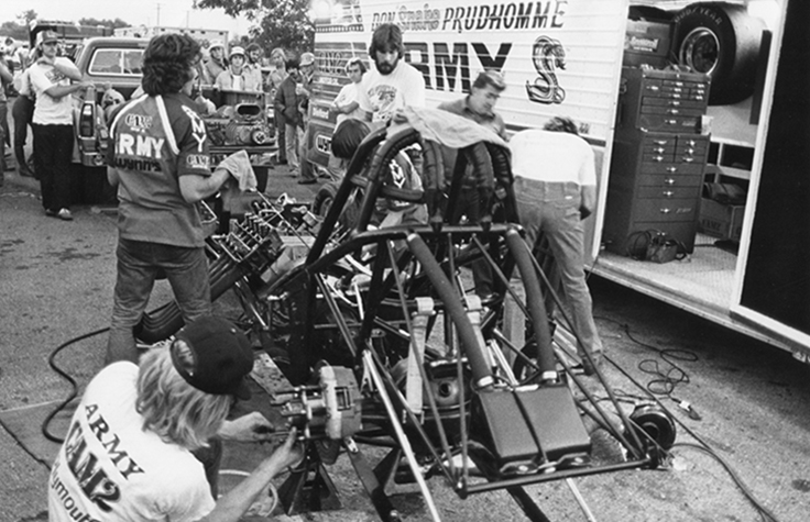 “You could run once, twice, five times, 10 times, as long as you can get your car back in line and you were ready to run when they said run Top Fuel cars,” remembered Prudhomme. “But the bitch was that you’d come back and get in the staging lines instead of going to your pit to work on the car and sometimes we had to change the goddamn motor. It was very common in those days to see a dead Elephant [Hemi engine] on the side of the road that somebody took out and put another one in. You might not go back to your pits the whole day unless you knew we weren't going to run much anymore.