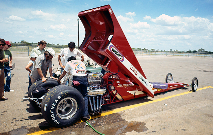 I asked Prudhomme if, in the wake of John Mulligan’s death at the 1969 U.S. Nationals (engine fire) and the loss of Mike Sorokin two years earlier, he thought the venerable slingshot was dangerous and needed a rear-engine car.