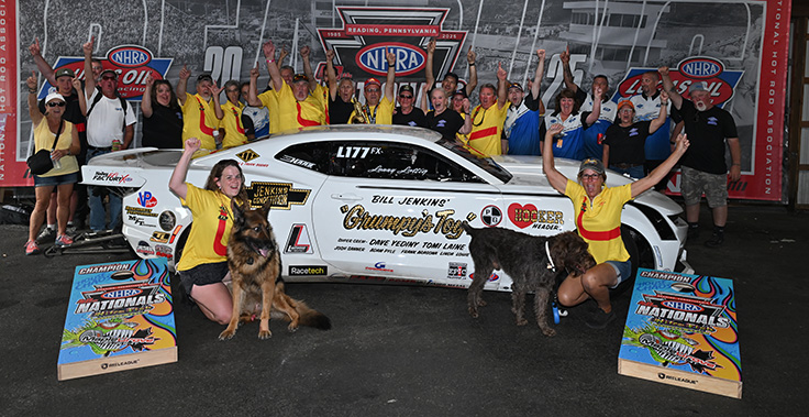 “When our car was getting completed, the talk amongst a lot of the people was to do a retro throwback to rejuvenate the whole Pro Stock style of racing and the original drivers. My crew chief had a history of working with Bill Jenkins, plus I’m from Pennsylvania and so was Bill Jenkins,” said Lottig, who also races in Factory Stock Showdown competition. “We were drawn like a bug to blue light to make this a Bill Jenkins tribute.”