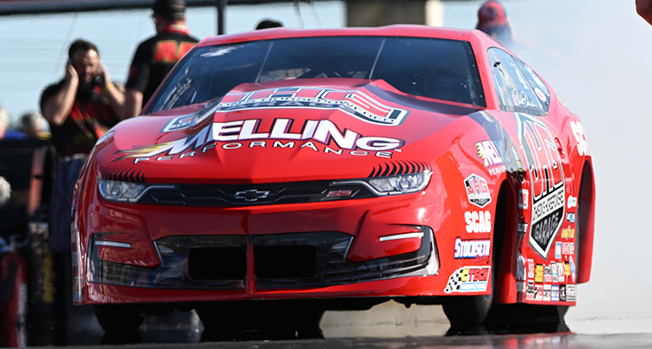Matt Hartford had a slight elapsed time advantage based on round one times over Cristian Cuadra, who qualified fourth in the tough Indy field. At the drop of the clutch, it was Hartford with a .006 and a reaction-time advantage, but both cars shook the tires, causing the drivers to momentarily lift. Hartford recovered first and ran 6.995 to hold off Cuadra’s 7.344.