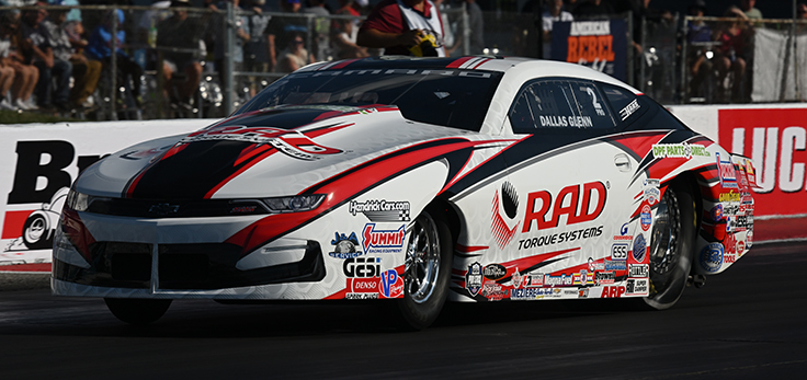 Not satisfied with winning the regular-season championship, Dallas Glenn came to the semifinal match ready to fight. He set low elapsed time in round 2 with a 6.52 and had set a track record 211.79 mph earlier in the day. His opponent, six-time champion Erica Enders, was enjoying a resurgence and had run 6.54 in the previous round. This race ended on the starting line with Dallas going red when he matted the throttle. At that moment his Camaro jumped forward causing a red light, while Enders was .023 and shifted her way to a 6.566 at 211 mph.