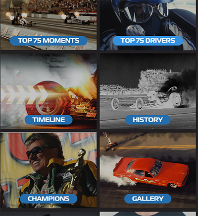 We’re also hard at work on a 75th anniversary website that will explore the sport’s history through photos, videos, text, and interactive graphics. Fans will be able to browse season-by-season lists of the year’s greatest moments and champions, and a massive photo gallery of curated images and interactive video playlists will showcase highlights from seven decades of NHRA history. Fans can also shop for 75th anniversary merchandise and tickets as well as keep abreast of the latest 75th anniversary news as the season roars to life.