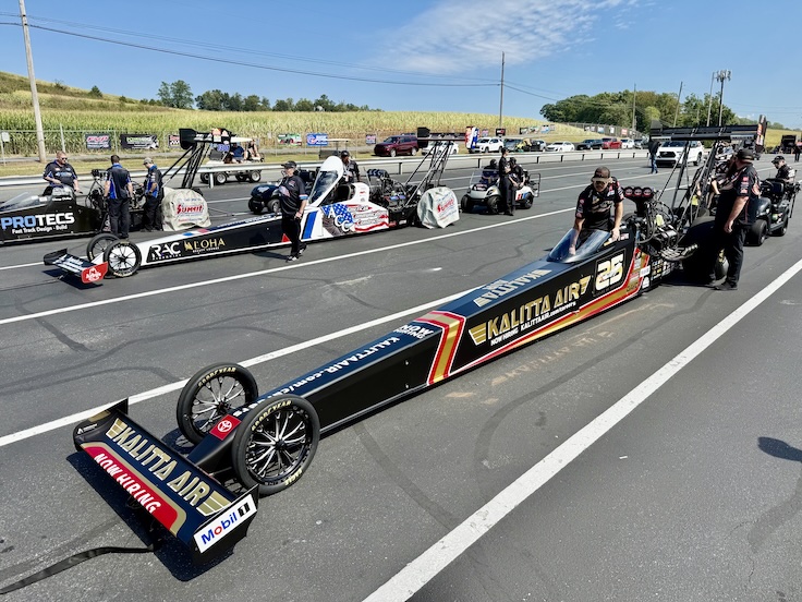 Alan Prusiensky opened the session solo in the right lane but slowed to a 7.307 at 133.47 mph after getting loose early. His 1.010 sixty-foot and 4.376 to the eighth at just 159.59 mph indicated he was off the pace and remains on the outside looking in.
