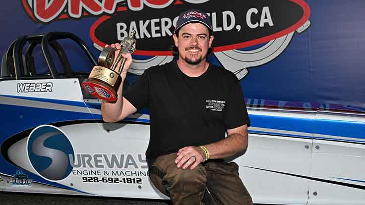 One racer who equaled Webber’s great result is Comp driver Kevin Carter, who also grabbed a win and a runner-up in Bakersfield behind the wheel of his front-engine A/Nostalgia Dragster. Carter, the son of two-time champion Dean, has now been to four finals this season with two wins, and he’s solidly in the Top 10.