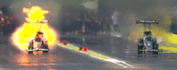Alex Laughlin, in what is probably his last race subbing for Buddy Hull this season, left on Ron Capps by six-hundredths but couldn’t hold the lead after dropping a cylinder. Capps streaked to the win but paid the price with a blower backfire.