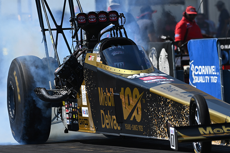 In a rematch of their final round race at the recent Midwest Nationals, points leader Doug Kalitta advanced to the semifinals with a 3.75 over Ida Zetterström, Kalitta’s 11th round win of the Countdown so far, as he chases a second world championship. No matter happens the rest of the day, Kalitta will head into the season’s final two races with the points lead.