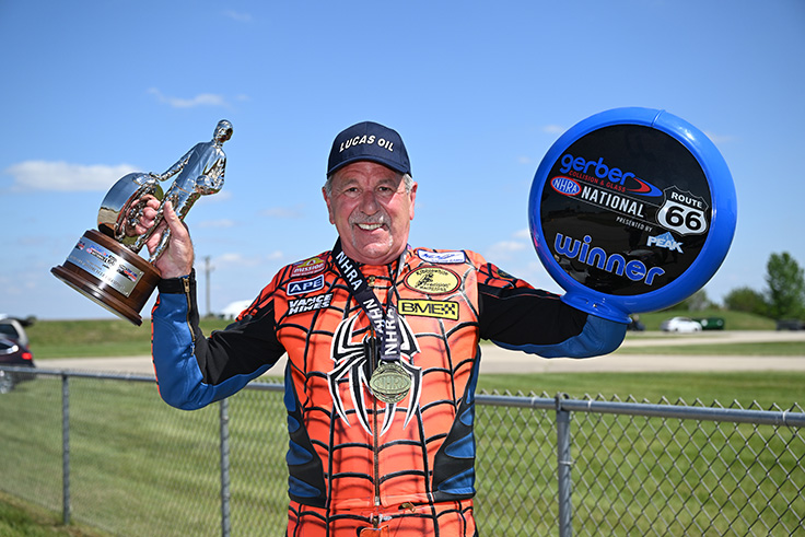 “I’ve been doing this for 47 years, so I don’t know any better or any different,” said McBride, following his title-clinching Brainerd win. “I just love coming here to NHRA and putting on a good show for the fans. Most weekends, my pits are filled with kids, and I do it for them. To me, it’s just great to be out here, and I couldn’t do it without the support of Pingel, Redline Oil, Fox, and everybody else who helps out.”