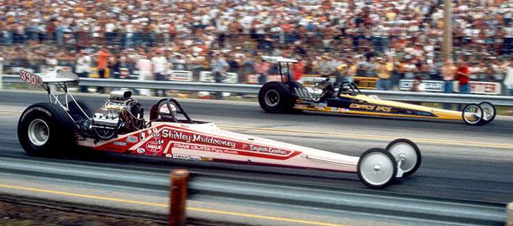 Eighteen-year-old Shirley Roque's first trip down a dragstrip came in 1958, at Fonda Speedway in New York, at the wheel of a 348-powered '58 Chevy. After campaigning doorslammers for several years, she married another former street racer, Jack Muldowney, who built her first dragster. She earned her dragster license in 1965, and the couple raced in the East and Midwest.