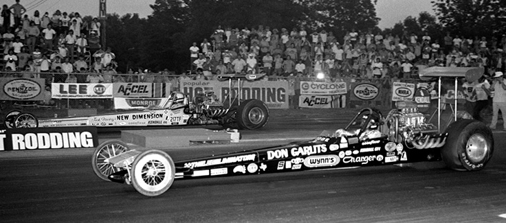 Garlits actually red-lighted in round one to Indiana’s Dick Carnett, but he got back in on the break rule when Carnett couldn’t make the second-round call. The final was a precursor to that year’s famed “burndown” final in Indy as Garlits drove around Steve Carbone’s holeshot to win with a 6.38.