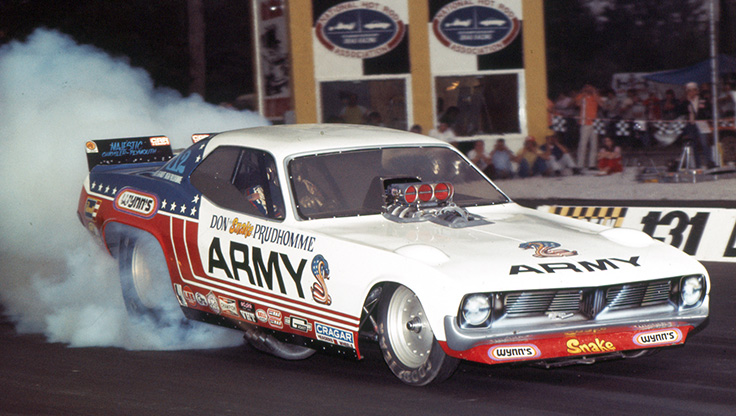 Prudhomme won Funny Car for the third straight year, winning with a strong 6.12 in the U.S. Army Monza. Like Garlits, a few months later, he would break a barrier at the NHRA World Finals — the first five-second pass.