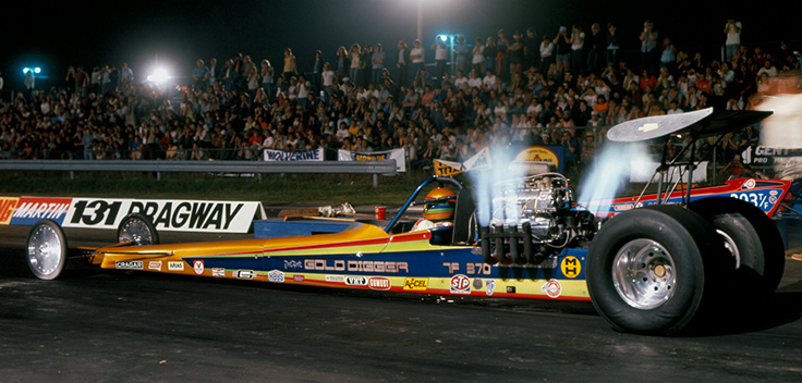 Like 1971 Funny Car winner Gary Bolger, 1974 Top Fuel champ Billy Campbell was driving a car named Gold Digger, upsetting Dave Settles and the vaunted Candies & Hughes dragster in the final.
