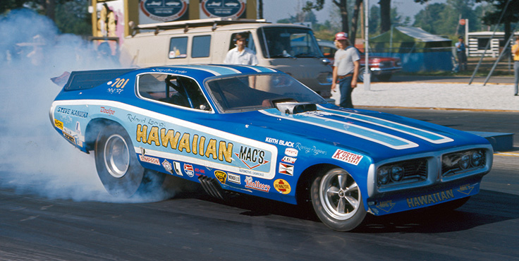 Colson was back in the Funny Car final for the first time since 1974, but now he was behind the wheel of Leong’s King’s Hawaiian Bread Corvette, and Leong, one of the sport’s staunchest and most prolific match racers, brought home the dough with a victory over tire-smoking Burgin.