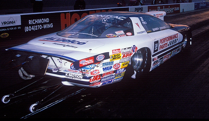 In April 1997 in Richmond, Va., during Friday night qualifying under prime atmospheric conditions, Warren Johnson, "the Professor of Pro Stock," broke the 200-mph speed barrier in Pro Stock with a 200.13-mph pass in his GM Performance Parts Pontiac Firebird, earning $25,000 and becoming the inaugural member of the Speed Pro 200-mph Club.