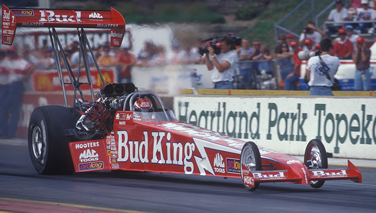 After winning four Funny Car championships in the 1980s, Kenny Bernstein won the Top Fuel crown in his Budweiser King dragster in 1996, becoming the first driver in history to win world championships in both nitro classes, and would win the Top Fuel crown again in 2001. Gary Scelzi and Del Worsham have since matched that feat.