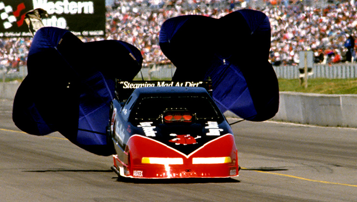 In an emotional finish at the year’s biggest drag race, Tom “the Mongoose” McEwen, still mourning the death of his son, Jamie, just weeks earlier, defeated archrival Don “the Snake” Prudhomme in the final round to score the biggest win of his career. The moment became the basis of the 2013 Hollywood movie Snake & Mongoose.