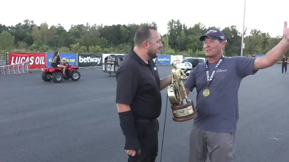 Two-time world champ Jeff Strickland checked perhaps the last important thing on his to-do list by winning in the Right Trailers Top Dragster class. Strickland made his way through the fast field to beat Holden Laris in the final using a 6.29…